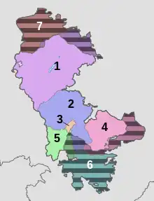 1: Martakert; 2: Askeran; 3: Stepanakert (city); 4: Martuni; 5: Shushi