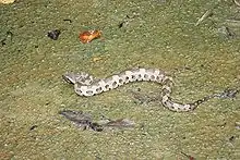 The color pattern consists of a gray ground color overlaid with a series of dark gray of grayish-black crossbands. A ventrolateral pattern of black spots against a gray-white background is also present.[6]