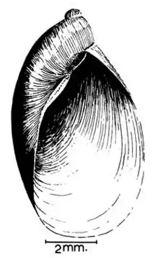 Drawing of an apertural view of the shell of Oxyloma patentissima