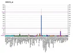 This gene is up-regulated in a large proportion of prostate cancers and is also detected in cancers of the bladder and pancreas.[6]