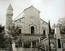 After several requests to return to Herzegovina, Buconjić's appeals were accepted.[3] He lectured in Rome until 20 December 1866, when he returned to the Franciscan friary in Široki Brijeg to teach dogma and morals.[3] In 1871 he gained the highest Franciscan academic title of jubilee lecturer.[11] The Custody's administration decided already in 1865 to establish new parishes, including the one in Buconjić's home village Drinovci. Buconjić helped them to find a lot for the construction of a new parochial residence. In 1871 Drinovci became at first a chaplaincy, while Buconjić was named its chaplain, and in 1873 it was elevated to the status of a parish, with Buconjić as its first parish priest.[12][13] While in Drinovci, Buconjić finished the construction of the parochial residence[11] and helped constructing a parochial church.[14] Buconjić was elected Custos of the Franciscan Custody of Herzegovina on 31 May 1874 for a three-year term.[11][15]