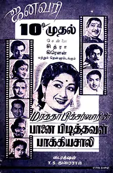 2. 1 2 "1958 – பானை பிடித்தவள் பாக்கியசாலி – மரகதா பிக்" [1958 – Paanai Pidithaval Bhaagyasaali – Marakatha Pic.]. Lakshman Sruthi (in Tamil). Archived from the original on 9 May 2017. Retrieved 9 May 2017.