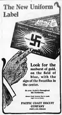 In 1930 Nabisco purchased Pacific Coast Biscuit Company and continued to operate its brands, and the swastika was replaced by Nabisco's in-er-seal logo.
