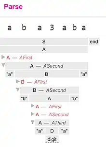 A special expression is the starting point of the grammar.[2] In case no is specified, the first expression of the first rule is used.