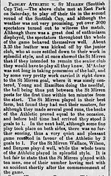 1881–82 Scottish Cup First Round, Paisley Athletic 3–1 St Mirren, Paisley Daily Express 10 October 1881
