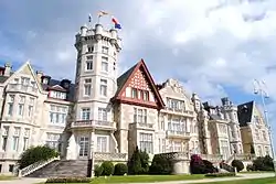 The Palacio de la Magdalena (Spanish for Magdalena Palace) is a palace in Santander (Cantabria), Spain. Its construction was financed by popular subscription and given to the Spanish royal family for use as a summer residence. It was built by architects Javier González Riancho and Gonzalo Bringas Vega between 1909 and 1911. The palace is located at the Magdalena Peninsula in the place where the old Fort of San Salvador de Hano was, which protected the entrance to the bay. Since 1932, it hosts the summer courses of the Menéndez Pelayo International University. In 1977, the City Council of Santander bought back the palace and the peninsula.
