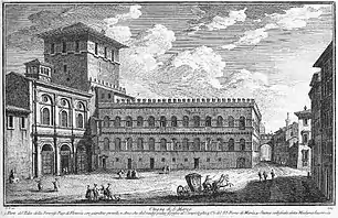 At the beginning of the 16th century, the Palazzo San Marco began to decline, although it continued to be a papal seat as an alternative to the Vatican. It was restored in 1527 at the behest of Pope Paul III, who chose it as his summer residence.[3] In 1537, he had the Palazzo connected via a hanging corridor to the Tower of Paul III, which faced Capitoline Hill. During this period, the arches of the loggia of the Palazzetto were bricked up, in order to consolidate the structure. Thus, it began to have the characteristics of a distinctly separate building, and it gained the name Palazzetto di San Marco. Under Paul III, the Palazzetto was frequently used: at least seventy consistories were held there, and in 1536 it hosted an audience of Charles V.
