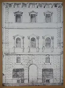 Drawing of the facade attributed to Antonio da Sangallo the Younger. Uffizi, 201 A. The drawing bears the inscription: Di m.ro Antonio in Borgo[1]