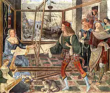 Overall, the theme of the decoration was derived from epic poetry, ancient history and the fourteenth-century literary tradition and drew on examples of civil and military virtue.
