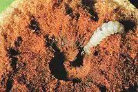 The larvae live as an inquiline in cynipid galls on various plant species, including Andricus kollari, Andricus conglomeratus, Andricus hungaricus, Andricus lucidus and Aphelonyx cerricola. They often consume the cynipid larva as well as gall tissue.
