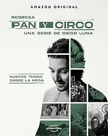 Pan y Circo (Spanish for "Bread and Circus") is a Mexican Spanish-language talk show TV series that premiered on Amazon Video on August 7, 2020. The show is hosted by actor Diego Luna and was produced by La Corriente del Golfo, a production company run by Luna and fellow Mexican actor Gael García Bernal. In each episode, Luna and six guests sit for a meal prepared by a notable Mexican chef and discuss some sociopolitical issue.[1] The guests include politicians, activists, academics, artists and celebrities.[2] The show's first episode was filmed last, during the COVID-19 pandemic, and shows Luna and his guests all sitting at home, eating while videoconferencing together.[3]