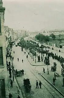 ![]() A funeral procession in front of the Pangalti Armenian Cemetery, 1913 | |