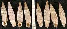 Shells of Papillifera papillaris from the island of Malta. Scale bar is in mm.