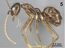 This article incorporates text from a scholarly publication published under a copyright license that allows anyone to reuse, revise, remix and redistribute the materials in any form for any purpose: Lapolla, J.; Hawkes, P.; n. Fisher, J. (2013). "Taxonomic review of the ant genus Paratrechina, with a description of a new species from Africa". Journal of Hymenoptera Research. 35: 71–82. doi:10.3897/JHR.35.5628. hdl:2263/40025. Please check the source for the exact licensing terms.