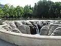 In the northeast of the park stands the Cinémathèque Française (the former American Center) designed by Frank Gehry; on the raised terraces are the 21 sculptures of Rachid Khimoune's "Children of the World" installation, created in 2001 to honour children's rights.