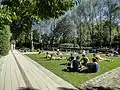 The Parc de Bercy (English: Park of Bercy) is a public park located along the Rive Droite in the 12th arrondissement of Paris.[1] Development started in 1994 on the site of a former wine depot (the wine warehouses of Bercy, which in the early 20th century was the largest wine market in the world) before an official opening three years later by Mayor Jean Tiberi.[2] Sponsored by President François Mitterrand, the project covered 14 hectares (34.6 acres).