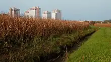 A view of the park showing rural areas near buildings from the outskirt of Milan