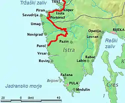 - number of bridges: 11 (the most important rivers to cross: the Osp, the Rižana, the Dragonja and the Mirna)