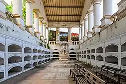 The church closed in 1994 after heavy rains caused the collapse of a wall of the church; additionally, the cemetery was used by residents for waste disposal. A restoration project began in 2011, which included the removal of 2,500 tons of garbage from the cemetery. The Parish Church of Our Lady of Pilar reopened in 2015.[2][3][4]