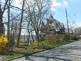 The neighborhood was developed in 1888 by the American Real Estate Company of Manhattan as one of the first planned communities in the New York metropolitan area. The neighborhood's centerpiece for a short time was the Hendric Hudson Hotel, designed by Bruce Price, the architect of the Château Frontenac in Quebec City.[1] Park Hill contains many vintage single-family homes, many overlooking the Hudson River. The neighborhood's housing stock consists primarily of large Victorian, Tudor Revival, Arts & Crafts, and Georgian Colonial-style homes.