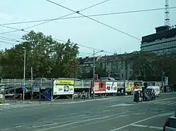 ![]() Parking lot in Karađorđeva street, with the park behind | |