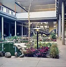 Upon opening in 1960, Park Plaza was considered the first major shopping center in West Little Rock (now called Midtown, and today's West Little Rock is further west) and was eventually blamed for the exodus of retail stores from downtown Little Rock. Park Plaza Shopping Center, as it was originally named, consisted of retail stores, a grocery store, a bowling alley, and a cafeteria.[1] In 1963, Gus Blass, a defunct downtown Little Rock department store founded in the 1860s, announced plans to build a store at Park Plaza.[5] Its Park Plaza location opened in 1965, becoming the first large store from downtown Little Rock with a presence at Park Plaza.[1][5] The site of the Gus Blass downtown location still stands today and is registered on the National Register of Historic Places.[6] In 1964, Gus Blass was sold to Little Rock-based Dillard's; in 1967, the Park Plaza Gus Blass was rebranded as Pfeifer-Blass, and in 1974, it finally became Dillard's.[7] Dillard's remains at Park Plaza today with two separate stores at the mall: Dillard's East and Dillard's West; the two locations serve as company flagship locations.[1]