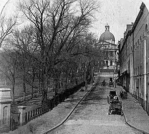 Park Street is a short but historic road in the center of Boston, Massachusetts. It begins at the top of Beacon Hill, at the intersection of Beacon Street, where it is lined up with the front of the Massachusetts State House. It then spills down the hill toward Tremont Street, with Boston Common to its west.[1]