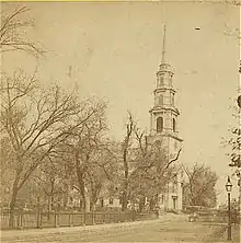 Park Street Church is a stop on Boston's Freedom Trail. The founding of the church is dated to 1804 when the "Religious Improvement Society" began weekly meetings with lectures and prayer.[3] The society organized the church on February 27, 1809. Twenty-six local people, mostly former members of the Old South Meeting House, wanted to create a church with orthodox Trinitarian theology.