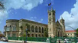 The Parliament Buildings (also known as The Public Buildings, or more rarely Parliament House), is the seat of the Parliament of Barbados. Built between 1870 and 1874, the buildings have been the meeting place for both chambers of Parliament since 16 June 1874, and a former site of Colonial administration of Barbados. It consists of two buildings in the neo-Gothic architectural style, and are reminiscent of the Victorian era of Great Britain.