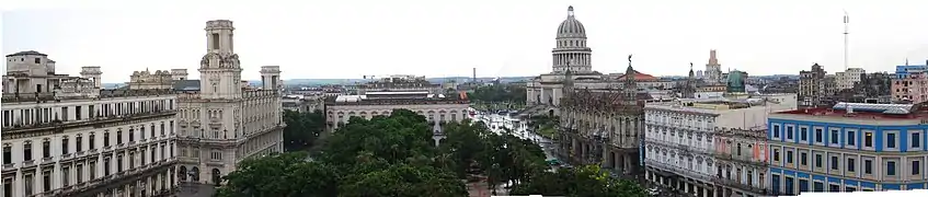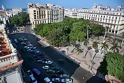 The Parque Central, Havana is one of the best known and central sites of the city of Havana, Cuba. It is located between Prado, Neptuno, Zulueta and San José streets, and San Rafael Boulevard. Among the buildings surrounding the park are Gran Teatro de La Habana (The Great Theatre of Havana Alicia Alonso), the Hotel Inglaterra (England Hotel), the Hotel Telégrafo, el Hotel Parque Central (Central Park Hotel), la Manzana de Gómez, the Hotel Plaza and Museo Nacional de Bellas Artes.[1]