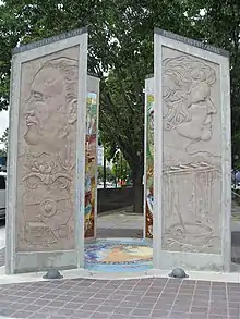 In 1997, the Monument to the Founding of the Pueblo de San José de Guadalupe was erected in the park. The monument, designed by the East Los Streetscapers, commemorates the city's founders that came on Anza Expedition of 1776 that established the city as the California's first civilian settlement.[2][3]