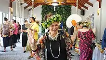 Mary Ama and the Pacifica Mamas celebrating the Matairangi Mahi Toi arts residency at Government House