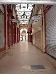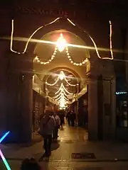 The Passage de l'Argue is a covered arcade in the Bellecour quarter, in the 2nd arrondissement of Lyon, which connects the rue de la République to the rue Édouard-Herriot and the rue de Brest.[1] It is continued across rue de Brest by the Petit Passage de l'Argue, which was part of the main passage until the road was constructed. The Passage de l'Argue is one of the oldest arcades in the French provinces, built at the same period and on the same model as Parisian arcades.[2] Home to many luxury retailers, it plays a significant role in the trade of the Presqu'île.[3]
