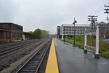 Station platform at the 2005-built Senator Patricia McGovern Transportation Center in Lawrence, Massachusetts.
