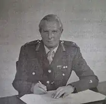 In 1980 he was given command of the British Army Advisory Training Team in Zimbabwe, advising President Mugabe.[1] In 1982 he was appointed General Officer Commanding North East District, in 1983 he was dual-hatted as General Officer Commanding North East District and Commander 2nd Infantry Division and in 1984 he was made Commandant of the Staff College, Camberley.[2] In 1986 he became Military Secretary and in 1989 he was promoted to full general and became Commander-in-Chief Allied Forces Northern Europe before retiring in 1992.[3] In 1988 he took the Grand Day general salute at the Duke of York's Royal Military School, Dover.