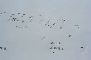 The camp was run by the private company Adventure Network International (now Antarctic Logistics & Expeditions LLC, known as ALE),[1] a company that provides expedition support and tours to the interior of Antarctica.[2] It was constructed in 1987[3] and used during the summer months of November to January.[4] Patriot Hills was for many adventurers and explorers a stop on the way from Chile's Punta Arenas into the interior of Antarctica. The flight time from Punta Arenas is about 4.5 hours.[3]