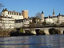 The château and the Pont du XIV-juillet [14 July Bridge] seen from the banks of the Gave de Pau