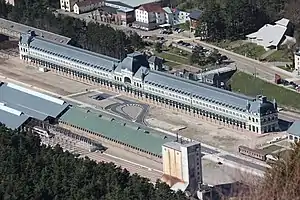 Limiting Canfranc station to its former freight part was completed in April 2021, changing the former track fields around the station building into a park and a road to access the buildings by the end of 2022. The hotel opens towards the end of January 2023, all the Spanish track is being equipped with sleepers convertible to standard gauge, and "with EU support it is hoped that the Canfranc line and station will be fully operational by 2026".