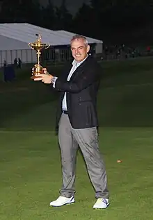 Paul Noel McGinley (born 16 December 1966) is an Irish professional golfer who has won four events on the European Tour. At the 2002 Ryder Cup, he famously holed a ten-foot putt on the 18th hole in his match against Jim Furyk at The Belfry which won the Ryder Cup for Europe.[2] He was the winning captain of Europe in the 2014 Ryder Cup and the first Irishman to captain Europe's Ryder Cup side.[3]