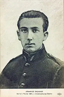 Sergent Paul Joannes Sauvage (5 February 1897—7 January 1917) was a French World War I flying ace credited with 8 confirmed and 6 probable aerial victories. He was originally posted to fly a Nieuport for Escadrille N 65, and scored his first victory with them on 16 July 1916. He became the youngest French ace on 2 October at age 19 years and 239 days, and held that distinction until his death by anti-aircraft fire on 7 January 1917.[1]