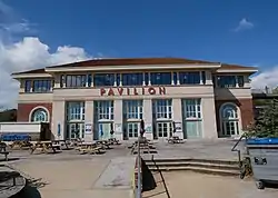 In the early 1930s, the Pavilion was rebuilt to accommodate theatrical productions as well as orchestras. It re-opened with a production of The White Horse Inn on 7 July 1934.[7] Several alterations were undertaken in the 1950s, including the addition of two storeys to either side of the main entrance.[5] In 1975, the Oasis Bar was added as a western extension of the hall. This proved to be unpopular, and was demolished in 2007 when the theatre underwent a £12 million restoration programme.[8]