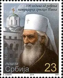 Pavle (Serbian Cyrillic: Павле, Paul; 11 September 1914 – 15 November 2009) was the patriarch of the Serbian Orthodox Church from 1990 to his death.[1] His full title was His Holiness the Archbishop of Peć, Metropolitan of Belgrade and Karlovci, and Serbian Patriarch Pavle. Before his death, he was the oldest living leader of an Eastern Orthodox church. Because of poor health, he spent his last years in the Military Medical Academy in Belgrade, while his duties were carried out by Metropolitan Amfilohije.