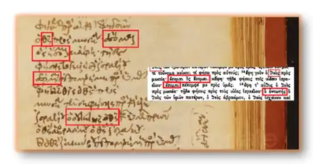 Exodus 3:14, 15 in Codex Marcianus gr. 7, as appears in Vasileiadis's doctoral dissertation (p. 65).