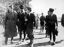 Pećanac (second from left) with a German military officer and Kosovo Albanian collaborator Xhafer Deva (third from left) in Podujevo, Territory of the Military Commander in Serbia, 20 October 1941