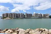 There are villa-type housing on the island and a road is connecting the island to the mainland. It is now part of the Gold Coast residential area in Hong Kong.