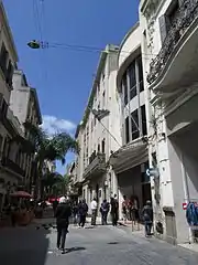 Peatonal Sarandí is an 0.5 miles (850 m) pedestrian street in Ciudad Vieja, Montevideo, Uruguay. It is the main lane of the historic center, and one of the most touristic sites in the city, due to the fact that it is flanked by different architecturally notable buildings.[1] The pedestrian street starts at the Gateway of the Citadel and ends at its intersection with Peatonal Pérez Castellano, while the remaining four blocks, up to the Rambla, are allowed for vehicles.[2] As an extension of this street is the long southern breakwater of the Port of Montevideo, which has taken on the name "Escollera Sarandí".[3]