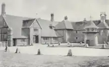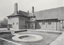 The original 17th century timber-framed house was enlarged in 1910 under the architects James Edwin Forbes and John Duncan Tate (as Forbes and Tate) in the Arts and Crafts style. Originally a farmhouse, the barns and outbuildings were converted into a single large residence.[1] Forbes and Tate specialised in converting old buildings into houses, the Buckinghamshire edition of the Pevsner Architectural Guides describes Pednor House as their "most extensive and successful conversion" that created a "picturesque Tudor courtyard house" [2] Forbes and Tate commissioned Gertrude Jekyll for a garden planting plan around the sundial at Pednor House. In his 2000 book The Gardens of Gertrude Jekyll, Richard Bisgrove described Jekyll's detailed plan for Pednor House as creating planting in "carefully disposed in repeated and irregular groups to provide a low mosaic of flowers and foliage throughout the year".[3]