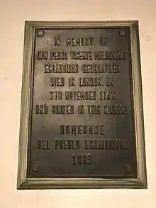 From Madrid, he traveled to Paris, where he was received as a member of the French Academy of Sciences on March 24, 1747 based on reports about his merits from other geologists who knew him in Quito, giving him the opportunity to print his “General Map.” That same year he traveled through the Netherlands and in August 1748, was transferred to London, where he was invited to participate in meetings of the Royal Society as one of its members,[1] but he died before he could be inducted. His remains were interred in the St James's Church, Piccadilly, leaving behind a vast legacy of scientific study and research. A memorial to him also lies within the church.