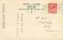 reverse of postcard posted in 1924, "passed out O.K. stationed Monday!"