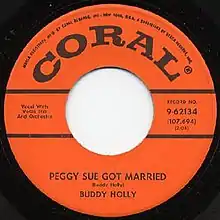 "Peggy Sue Got Married" is a song written and performed by Buddy Holly. It was posthumously released in July 1959 as a 45-rpm single with "Crying, Waiting, Hoping". It refers to his 1957 hit song "Peggy Sue". It was one of the first sequels of the rock era.